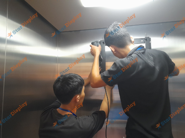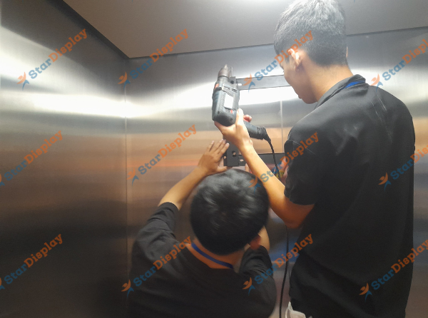 Màn hình quảng cáo gọn, nhẹ, phù hợp với diện tích của thang máy