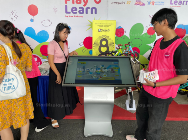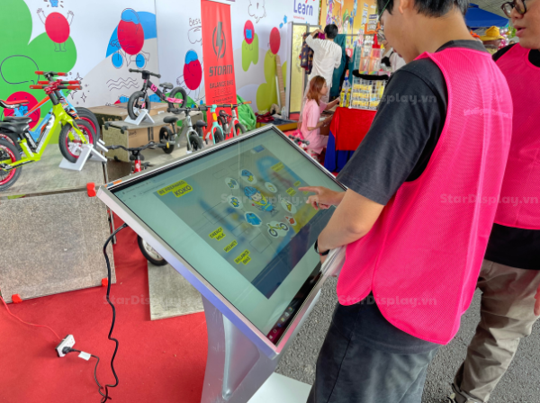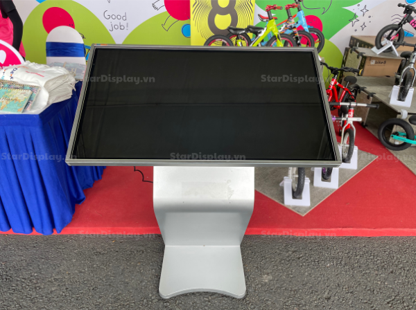 Thuê màn hình cảm ứng chân nghiêng : độ sáng màn hình cao, góc nhìn rộng, đảm bảo tầm nhìn ở mọi góc, hỗ trợ trình chiếu nhiều file khác nhau, hiển thị video và hình ảnh sống động, rõ ràng, tiện lợi, sang trọng, giúp người tham quan dễ dàng thao tác và trải nghiệm.