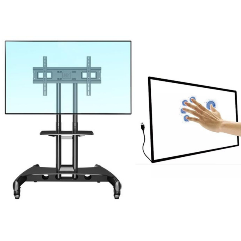 Khung cảm ứng được lắp đặt trên màn hình của trường,hỗ trợ đa điểm, cảm ứng chính xác, không có điểm chết, sử dụng bút hoặc ngón tay để điều khiển, chân đế giúp giáo viên dễ dàng di chuyển màn hình