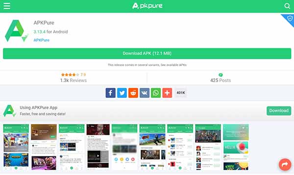 Nếu bạn là người thường xuyên tải các ứng dụng Android thì hãy sử dụng ngay APKPure. Đây là một kho ứng dụng không chính thức và không có sẵn trong CH Play. APKPure không chỉ cho phép bạn tải file APK của ứng dụng đó mà đôi khi là cả Data riêng lẻ, điều mà CH Play không cho phép. APKPure rất an toàn và được hàng triệu người trên thế giới sử dụng.