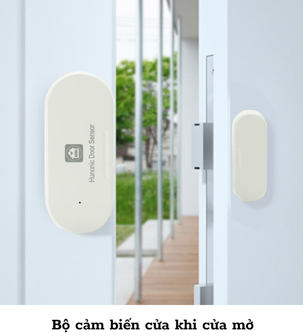 Khi cài đặt cảm biến cửa vào các khung giờ thường xuyên vắng nhà hay giờ đi ngủ từ 23h đêm đến 6h sáng. Vào những khung giờ này mà cửa mở thì cảm biến cửa thông minh sẽ ngay lập tức truyền thông tin về bộ điều khiển trung tâm Hunonic Home Server. Từ đây, bộ trung tâm Hunonic Server sẽ tiếp nhận thông tin và kích hoạt các công tắc, động cơ có liên quan đến thiết bị đã được cài đặt trước đó như: Thiết bị đèn sẽ tự động sáng, rèm sẽ tự động mở, thông báo sẽ được gửi liên tục về điện thoại của bạn.
