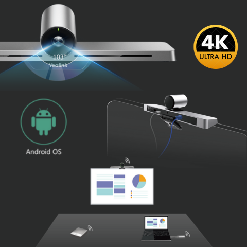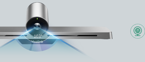 Camera Ultra HD 4K hỗ trợ zoom kỹ thuật số 4x và e-PTZ, với góc nhìn ngang 103° siêu rộng, bao quát mọi chỗ ngồi trên bàn.