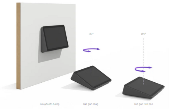 Lắp đặt Tap ở hầu hết mọi nơi trong phòng với Giá gắn trên bàn và Giá gắn nâng vừa với các lỗ cáp tiêu chuẩn và xoay 180° để dễ nhìn và thuận tiện, hoặc tiết kiệm không gian trên bàn trong phòng nhỏ với Giá gắn lên tường.