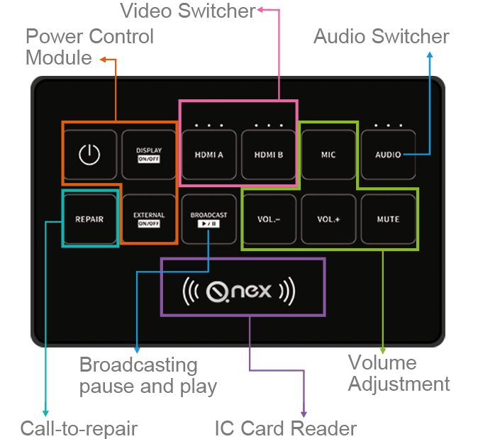 Q-nex Touch Panel : là một phụ kiện điều khiển nhỏ gọn của NMP, được thiết kế để hỗ trợ giáo viên vận hành các thiết bị đa phương tiện trong lớp học mà không cần kết nối cáp.