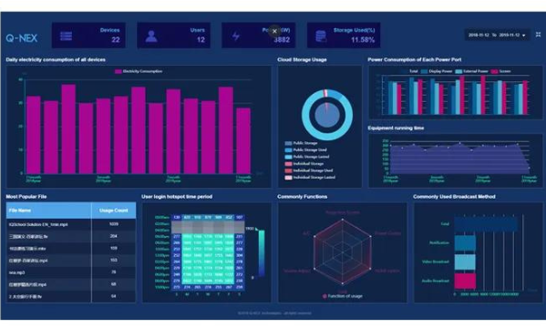 Hệ thông quản lý Q-nex : bao gồm một nền tảng dựa trên web – Bảng điều khiển Q-NEX và một Hệ thống dịch vụ phát trực tuyến. Bằng hệ thống của chúng tôi, quản trị viên CNTT của trường học có thể giám sát và kiểm soát tất cả các cơ sở điện tử được kết nối và lên lịch phân phối AV từ mọi nơi.