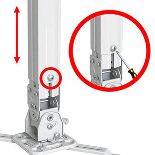 - Giá treo trần máy chiếu có thể điều chỉnh khoảng cách trần từ 39cm đến 60,5cm.
