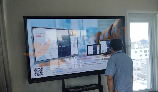 Đặc biệt, là chức năng chia sẻ màn hình cho người tham dự cuộc họp qua Laptop hoặc điện thoại. Bên cạnh đó SmartBoard với độ phân giải 4K làm cho hình ảnh trình chiếu sắc nét, sống động và vô cùng ấn tượng,.. hỗ trợ hiệu quả cho công tác hội họp