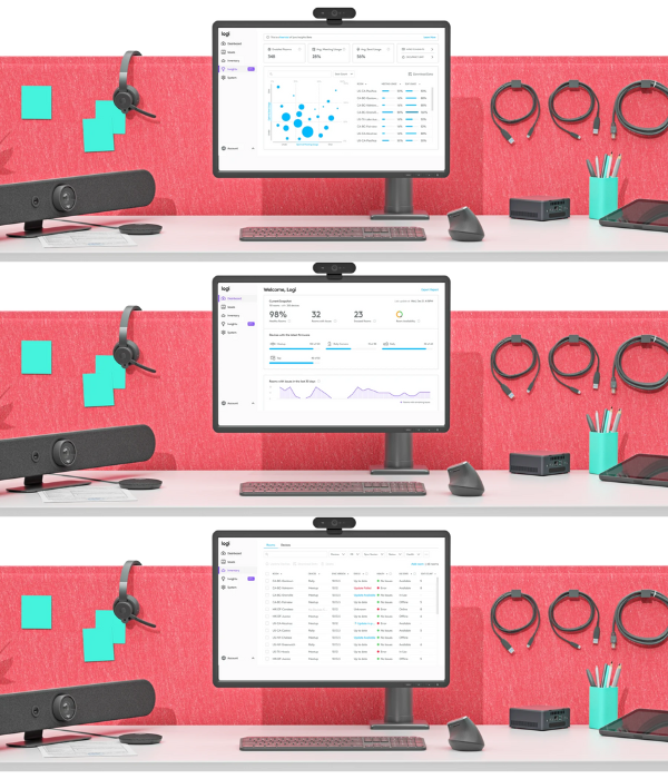Dễ dàng quản lý các thiết bị hợp tác video của Logitech với Logitech Sync. Theo dõi tình trạng phòng, triển khai cập nhật và sửa đổi cài đặt - tất cả từ một nền tảng dựa trên đám mây duy nhất. Và với Thông tin từ Sync, bạn có thể thấy các không gian họp được sử dụng như thế nào theo thời gian.