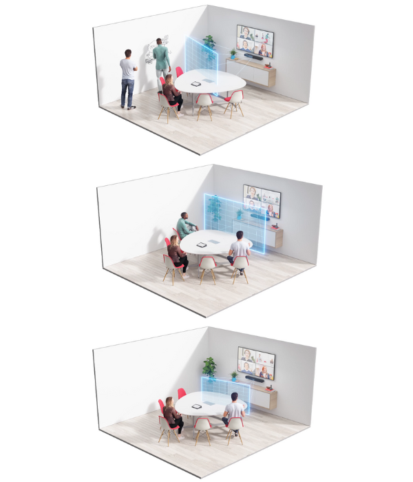 Dễ dàng thích ứng vào những không gian lớn với Mic Pod Rally. Khi lấy ra khỏi hộp, Rally Bar Mini có phạm vi thu lên tới 7 m, bạn có thể kéo dài ra đáng kể bằng cách thêm tới 3 Mic Pod.