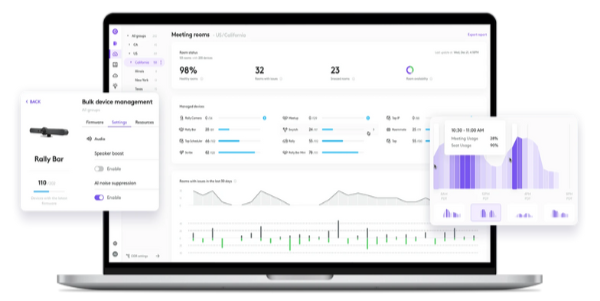 Dễ dàng quản lý các thiết bị hợp tác video của Logitech với Logitech Sync. Theo dõi tình trạng phòng, triển khai cập nhật và sửa đổi cài đặt - tất cả từ một nền tảng dựa trên đám mây duy nhất. Và với Thông tin từ Sync, bạn có thể thấy các không gian họp được sử dụng như thế nào theo thời gian.