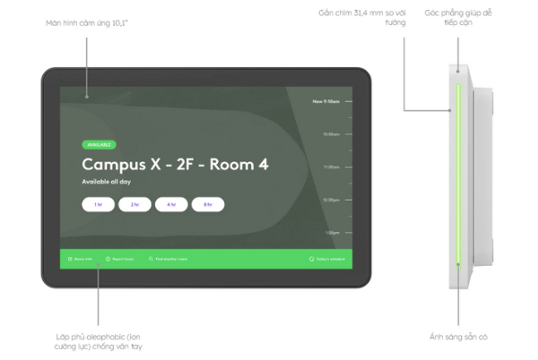 Logitech Tap Scheduler là thiết bị được sử dụng để đặt lịch và hiển thị tính khả dụng cho không gian phòng họp giúp bạn dễ dàng tìm và xác nhận không gian họp phù hợp. Bảng lập lịch được xây dựng với mục đích này tích hợp với các giải pháp từ Microsoft Teams, Zoom Rooms, Robin và Meetio để báo hiệu tính khả dụng từ xa và cung cấp chi tiết cuộc họp gần.