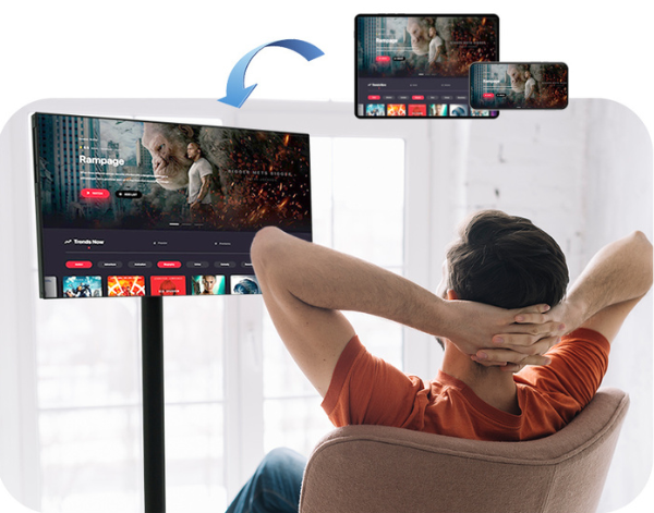 Trải nghiệm “smartphone cỡ lớn” : Màn hình cảm ứng di động thông minh gây ấn tượng với kiểu dáng năng động và đường nét tinh tế, là điểm nhấn trang trí nổi bật trong không gian phòng. Màn hình cảm ứng dễ dàng điều khiển chỉ với thao tác chạm, vuốt nhẹ. Khả năng di chuyển và xoay chỉnh đa hướng phù hợp cho nhu cầu xem phim trong phòng khách, xem hướng dẫn nấu ăn trong bếp hoặc nghe nhạc trong phòng ngủ… rất linh hoạt và tiện lợi.