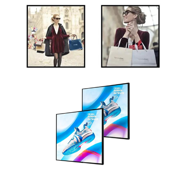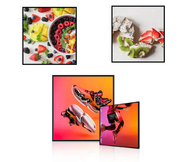 Màn hình quảng cáo chuyên dụng hình vuông có thể được sử dụng trong các dự án hoặc ứng dụng bảng hiệu kỹ thuật số hàng đầu, trong đó màn hình tỷ lệ vuông phù hợp với phương tiện hơn so với độ phân giải tiêu chuẩn hoặc màn hình rộng.
