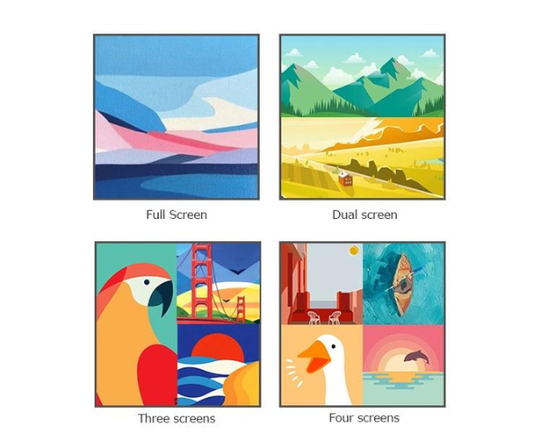 Màn hình chia nhỏ: phiên bản android hỗ trợ chia màn hình thành nhiều màn hình nhỏ, theo nhu cầu trình chiếu của khách hàng, kể cả hình ảnh hay video.