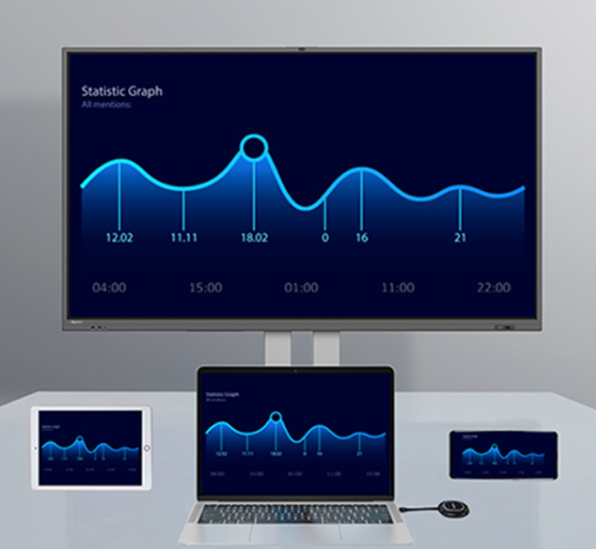 Tất cả trong một màn hình - Bạn có thể xem nhiều hơn một cách rõ ràng hơn : 4 loại thiết bị có thể được phản chiếu trên một màn hình, do đó có thể so sánh các bảng dữ liệu một cách rõ ràng.