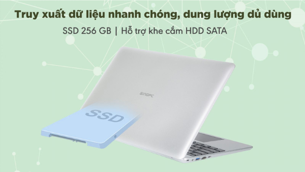 Ổ cứng SSD 256 GB, mang đến tốc độ phản hồi sớm, thời gian khởi động máy và truy cập các ứng dụng rút ngắn hơn đồng thời giúp thiết bị sản sinh ít nhiệt, bạn hoàn toàn có thể mở rộng thêm không gian lưu trữ nhờ khe cắm HDD SATA, tối ưu mọi nhu cầu sử dụng.