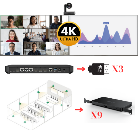 Với MeetingEye 800, bạn có thể trình bày nội dung/ video chất lượng 4K trên cả 3 màn hình và lựa chọn chế độ hiển thị yêu thích. Để cung cấp giải pháp hoàn hảo cho bất cứ phòng họp lớn nào, MeetingEye 800 có thể kết nối tối đa 9 camera rời, bao gồm các camera 4K UHD PTZ với khả năng Zoom 36x của Yealink và cả những camera của các thương hiệu khác.