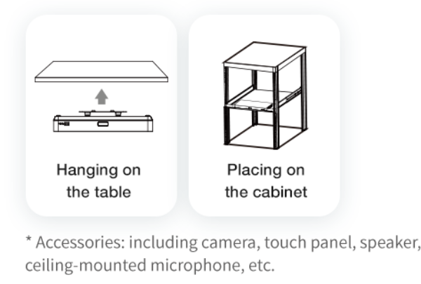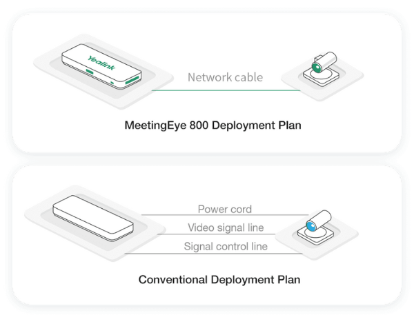 MeetEye 800 áp dụng thiết kế có thể tháo rời, hỗ trợ lắp đặt và triển khai như treo trên tường, đặt trên bàn, treo dưới bàn và đặt trên tủ. Thông qua giao diện VCH, sản phẩm tích hợp truyền dữ liệu, điều khiển tín hiệu và cấp nguồn chỉ với một đường dây đa năng.