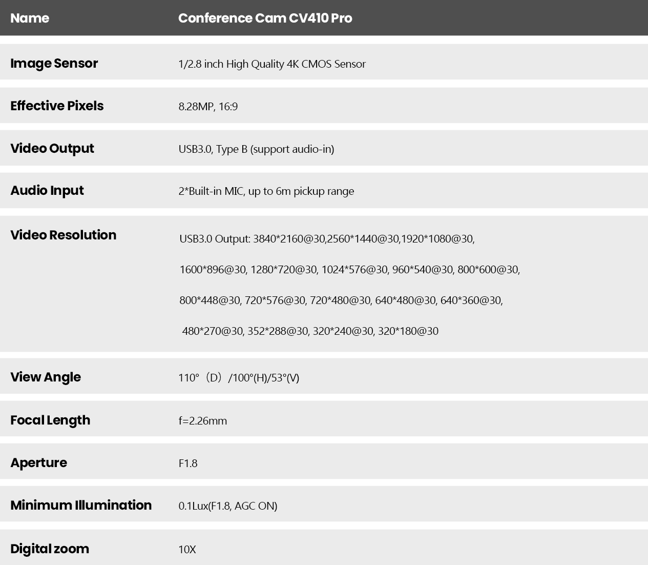 Premium video experienceUHD camera up to 4K 30fps, adopts advanced ISP processing algorithms so as to provide vivid images with evenly clear brightness, strong color layering, and fantastic color rendition. |