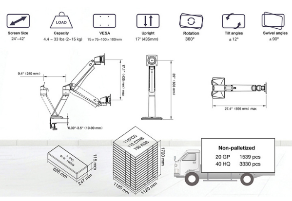 NB45 là giá treo màn hình máy tính gắn bàn, dành cho màn hình vi tính từ 24 đến 42 inch với tải trọng lên đến 15kg. Cánh tay dài hơn, vươn xa hơn giúp bạn có thể đứng hay ngồi làm việc đều được.