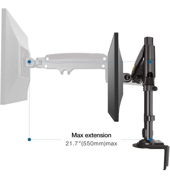 - Thiết kế đẹp mắt hơn, chắc chắn hơn, tải trọng khỏe hơn. Có cột đứng giúp cho việc điều chỉnh độ cao ở hai vị trí: cột đứng và lò xo khí nén ở cánh tay, giúp cho màn hình có thể điều chỉnh độ cao thấp dễ dàng.