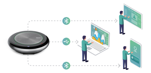 Yealink CP700 có thể kết nối với PC, máy tính bảng và điện thoại thông minh qua cáp USB, Bluetooth và dongle BT, hỗ trợ tối đa hai kết nối đồng thời.