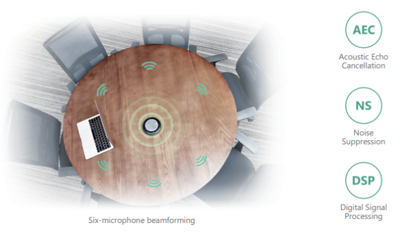Giọng nói HD, định dạng chùm tia sáu micrô và trải nghiệm song công hoàn toàn cao cấp, tất cả đều giúp người tham gia dễ dàng được lắng nghe và tham gia hơn. Mang đến âm thanh trong trẻo nhờ công nghệ AEC, NS và DSP
