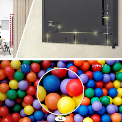 Thiết kế đơn giản – sử dụng với nhiều không gian khác nhau : Được thiết kế với viền mỏng và quản lý cáp đơn giản, UH5N-Egiúp tiết kiệm không gian. Với các ổ cắm điện ẩn chuyên dụng, nó có thể được lắp đặt sát tường, chỉ để lại khoảng trống khoảng 13 mm với giá treo mỏng.