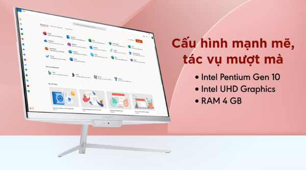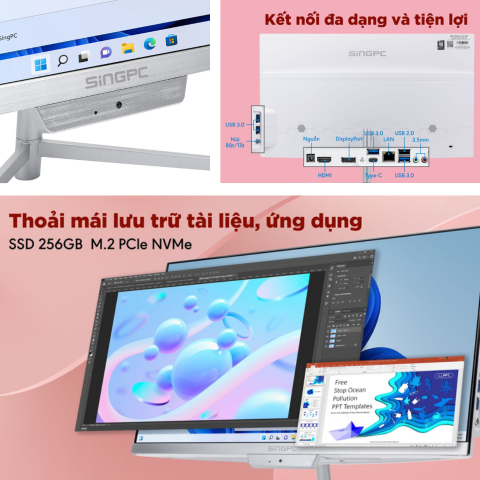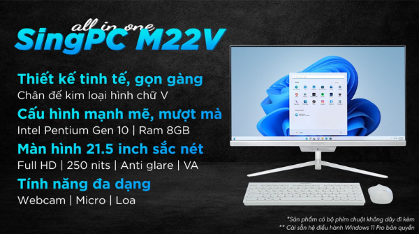 SingPC M22V là mẫu máy tính để bàn All in one hiện đại với thiết kế tối giản và gọn nhẹ, màn hình được tích hợp cả cpu, ram, ổ cứng, loa, camera. Đây sẽ là sự lựa chọn tuyệt vời dành cho học sinh, sinh viên và nhân viên văn phòng với nhu cầu sử dụng phổ thông.