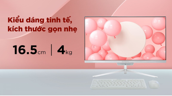 Máy tính SingPC M22V thiết kế đẹp mắt với màu trắng thanh lịch, thời trang. Phần chân đế được hoàn thiện từ kim loại chắc chắn và tạo hình chữ V độc đáo, giúp cho không gian làm việc của bạn trở nên hiện đại, rộng rãi hơn. Màn hình có độ dày 165 mm và trọng lượng chỉ khoảng 4 kg khá nhẹ nhàng để di chuyển, các thao tác setup góc làm việc cũng dễ dàng hơn.