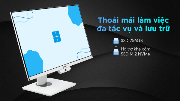 Ổ cứng SSD 256 GB M.2 NVMe cung cấp không gian lưu trữ vừa đủ để người dùng tải các dữ liệu quan trọng về máy hay những phần mềm có dung lượng nhẹ, đồng thời rút ngắn thời gian đăng nhập máy, khởi động ứng dụng và giúp thiết bị tiết kiệm nguồn năng lượng đáng kể.