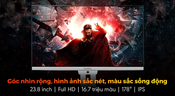 Màn hình hỗ trợ 16.7 triệu màu mang đến khả năng tái tạo các mảng màu sắc chân thật nhất, giúp bạn cảm nhận rõ ràng và lôi cuốn trên từng thước phim cho đến những trải nghiệm đặc sắc với khung hình sắc nét đến từng chi tiết hay trong bối cảnh game trên không gian hiển thị rộng lớn với kích thước màn hình 23.8 inch cùng độ phân giải Full HD (1920 x 1080), đảm bảo chất lượng hình ảnh được nguyên vẹn dù bạn nhìn trực diện hay nhìn nghiêng với góc rộng 178 độ nhờ vào tấm nền IPS hiện đại.