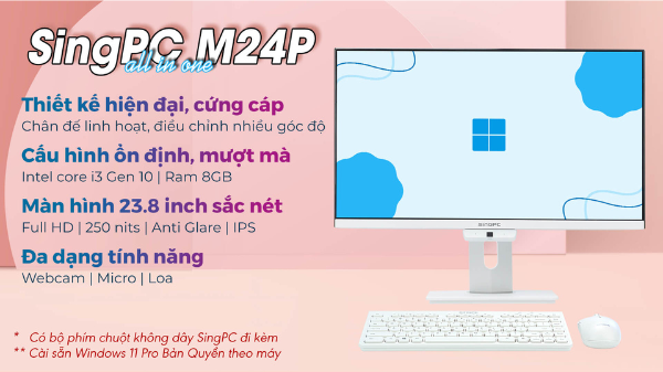 SingPC M24P là máy tính All In One khi được tích hợp đầy đủ các linh kiện đa năng như CPU, Loa, Camera, Micro... vào chung một màn hình lớn nhưng vẫn sở hữu thiết kế gọn gàng, thời thượng và hiện đại cùng cấu hình mạnh mẽ đa tác vụ.