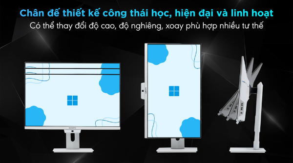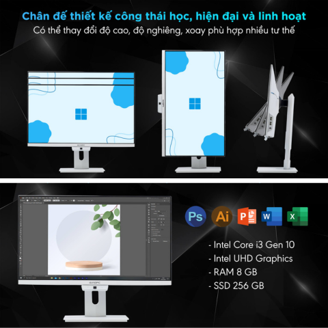 SingPC M24P với thiết kế tất cả trong một (All in one) toát lên vẻ thời thượng, sang trọng trong mọi không gian văn phòng hay góc làm việc tại gia, nhà hàng, khách sạn... Lớp vỏ màu trắng tinh khôi, hiện đại cùng những góc cạnh cắt vát tinh tế. Chân đế được thiết kế hình vuông vững chãi cùng với chiều cao chân đế có thể thay đổi 0 - 15 cm, xoay cực linh hoạt với 45 độ sang trái hoặc phải, quay 90 độ và góc lật nghiêng lên xuống 5 - 35 độ thật gọn gàng cho không gian lắp đặt và sử dụng, tiện dụng cho bạn làm việc ở tư thế thoải mái nhất.
