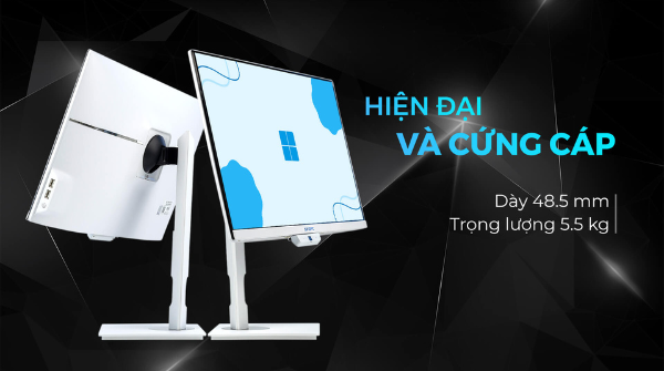Độ dày 48.5 mm và trọng lượng 5.5 kg mang đến khả năng di động cao, cho phép người dùng linh hoạt di chuyển máy ở nhiều vị trí khác nhau trong việc bày trí văn phòng hay dọn dẹp vệ sinh. Đi kèm với máy là chuột và bàn phím không dây cùng tone màu tạo nên sự đồng bộ, chỉnh chu, giúp người dùng lắp ráp thuận tiện và dễ dàng hơn mà không cần đến dây cáp rườm rà, phức tạp.