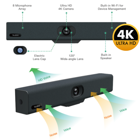 Với Công nghệ chống ồn Yealink, tính năng khử âm vang và song công hoàn toàn, dãy 8 micrô tích hợp và loa có độ trung thực cao 5W cho phép người dùng nghe và được nghe rõ ràng mà không bị phân tâm.