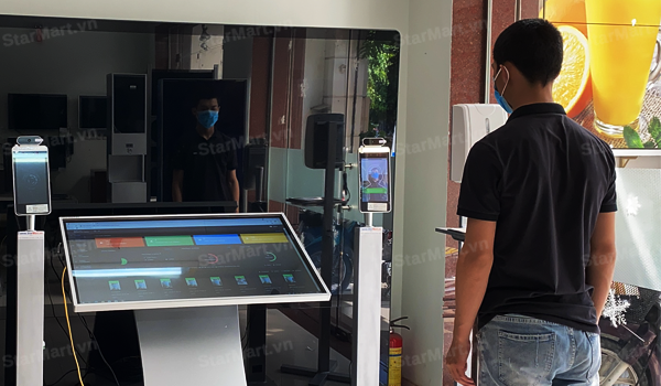 Trong trường hợp thân nhiệt vượt quá mức độ cho phép, người lạ, hay không đeo khẩu trang, thiết bị sẽ cảnh báo ra loa. Lúc này, bộ phận trực sẽ thực hiện các quy trình khác để hỗ trợ người bị từ chối.