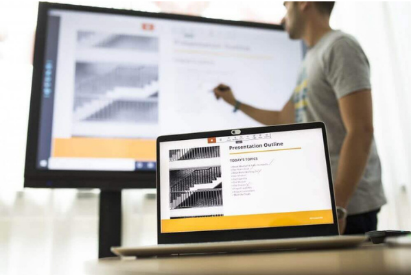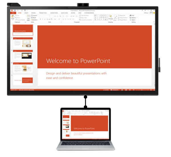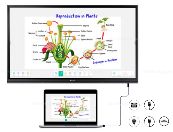 Sau khi kết nối thành công máy tính với màn hình tương tác, bạn có thể thực hiện các thao tác trình chiếu dữ liệu, hình ảnh, video từ máy tính lên màn hình, đồng thời bạn có thể tương tác hai chiều từ màn hình để điều khiển máy tính và ngược lại.
