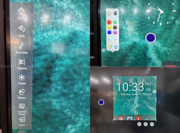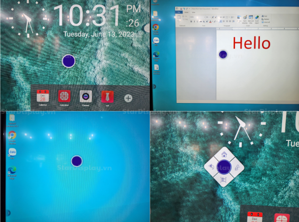 Tích hợp mở nhanh các ứng dụng như whiteboard, chụp màn hình, home ...
