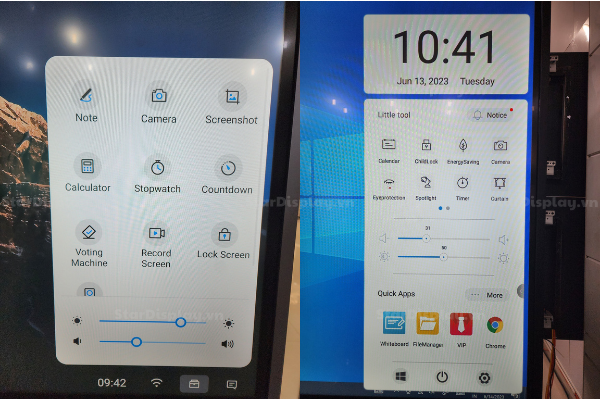 Tích hợp nhiều ứng dụng hơn như lịch, đồng hồ bấm giờ, chế độ vote, máy ảnh, quay màn hình, cài đặt màn hình ....