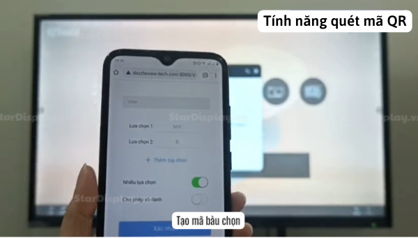 Sau khi tạo xong nội dung bầu chọn, một mã QR mới được tạo ra sẽ hiện lên trên màn hình IFP, quét mã QR này để tiến hành bầu chọn :