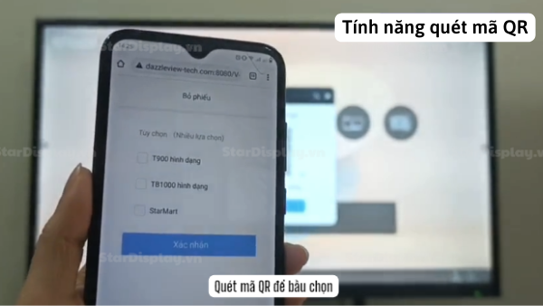 Nắm bắt xu thế cuộc cách mạng 4.0, từng bước thay đổi thói quen trong tiếp cận công nghệ mới, Màn hình tương tác thông minh đã ứng dụng tạo mã QR để bầu chọn. Thông qua mã QR, các đại biểu sẽ sử dụng Smart phone, máy tính bảng để trực tiếp scan và tiến hành bầu chọn, rất thuận tiện và nhanh chóng.