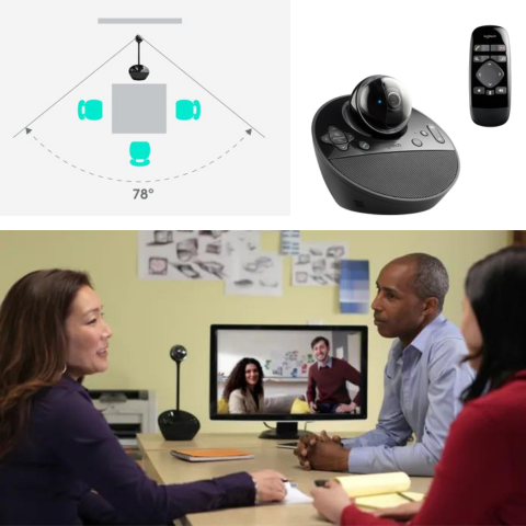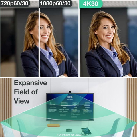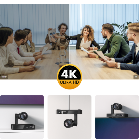Camera công nghệ cao cho phòng họp nhỏ từ 4-6 người với 4 camera hỗ trợ góc nhìn 360 độ, khả năng auto tracking , nhận biết và hiển thị tập trung người đang trình bày